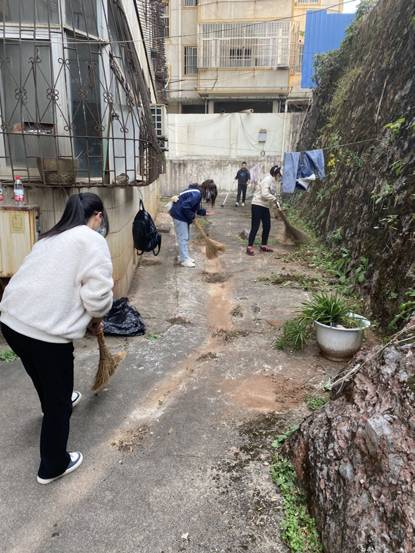 师生们分成三个小组,分工进行劳动,有的戴着手套从绿化带中清理纸片、烟头、杂草、枯枝、废弃花盆等杂物;有的用扫帚清扫路上的落叶;有的用锄头和铁锹铲除土渣、污泥;有的用小铁铲清除楼梯间和外墙的“牛皮癣”。大家干得很认真、很仔细、很出力,对电信小区存在的环境卫生问题进行了清理打扫,小区的面貌焕然一新。志愿者们不怕脏、不怕累,用自己的实际行动为全市文明城市创建出了一份力。
